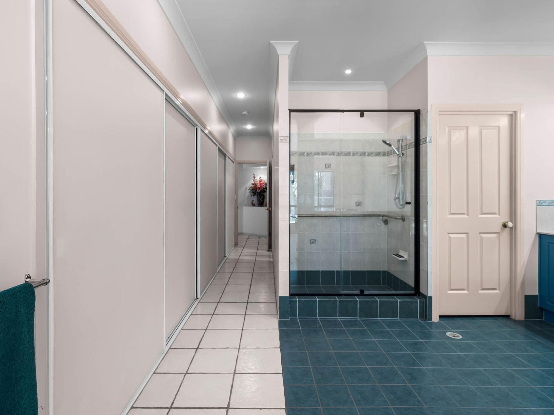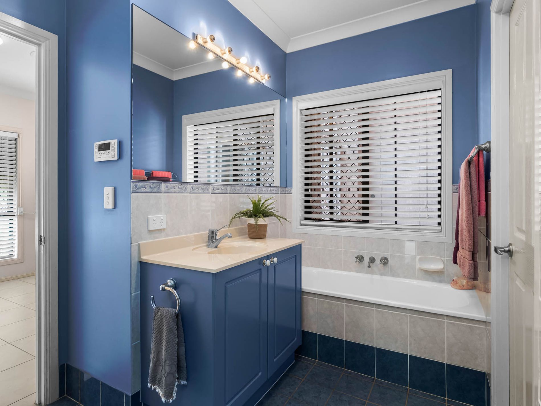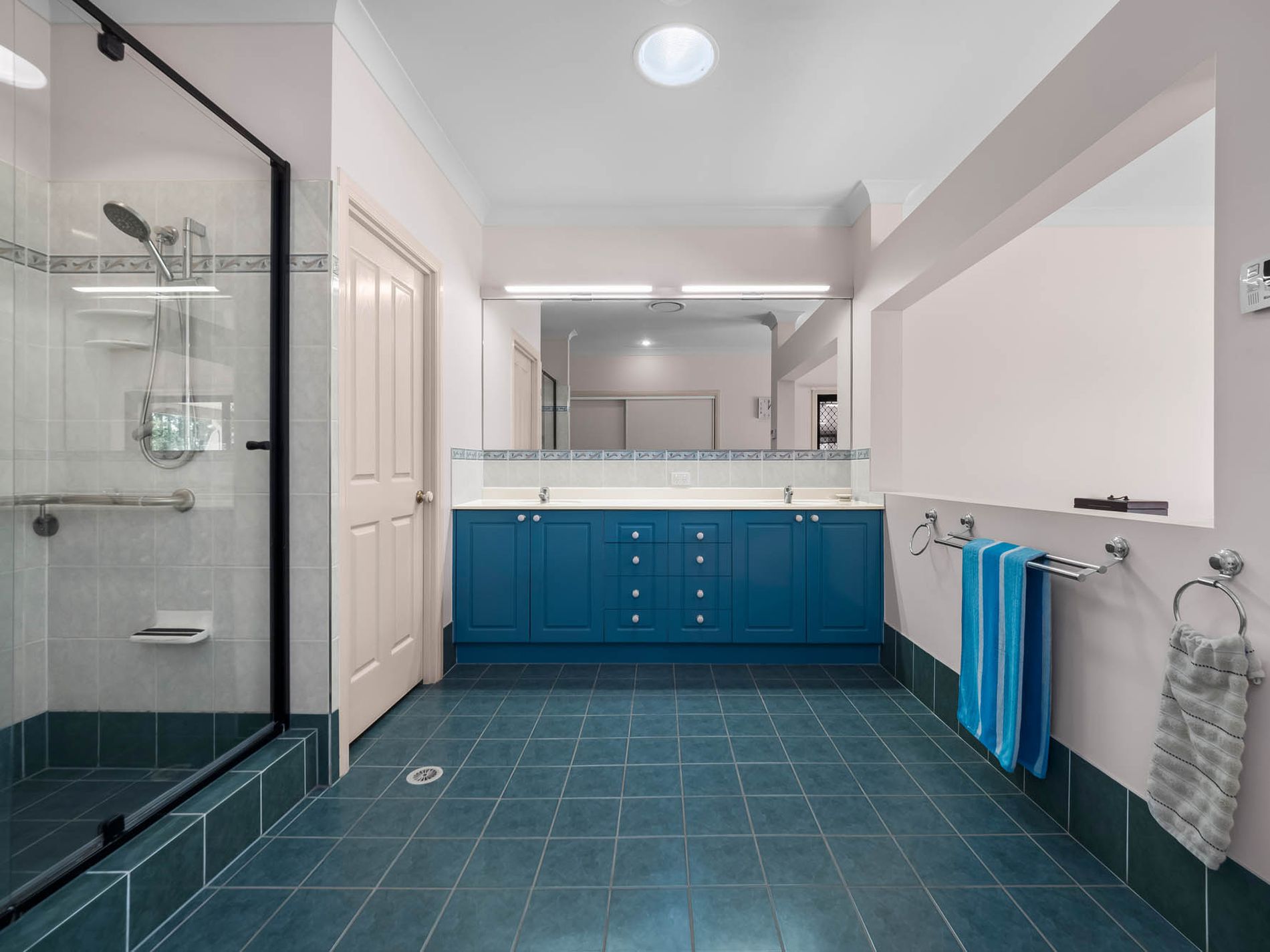 • Master bedroom has hybrid timber flooring, built in robe and double glass doors to access patio. Large open en-suite has double vanity with storage cabinetry, full length shower and separate toilet