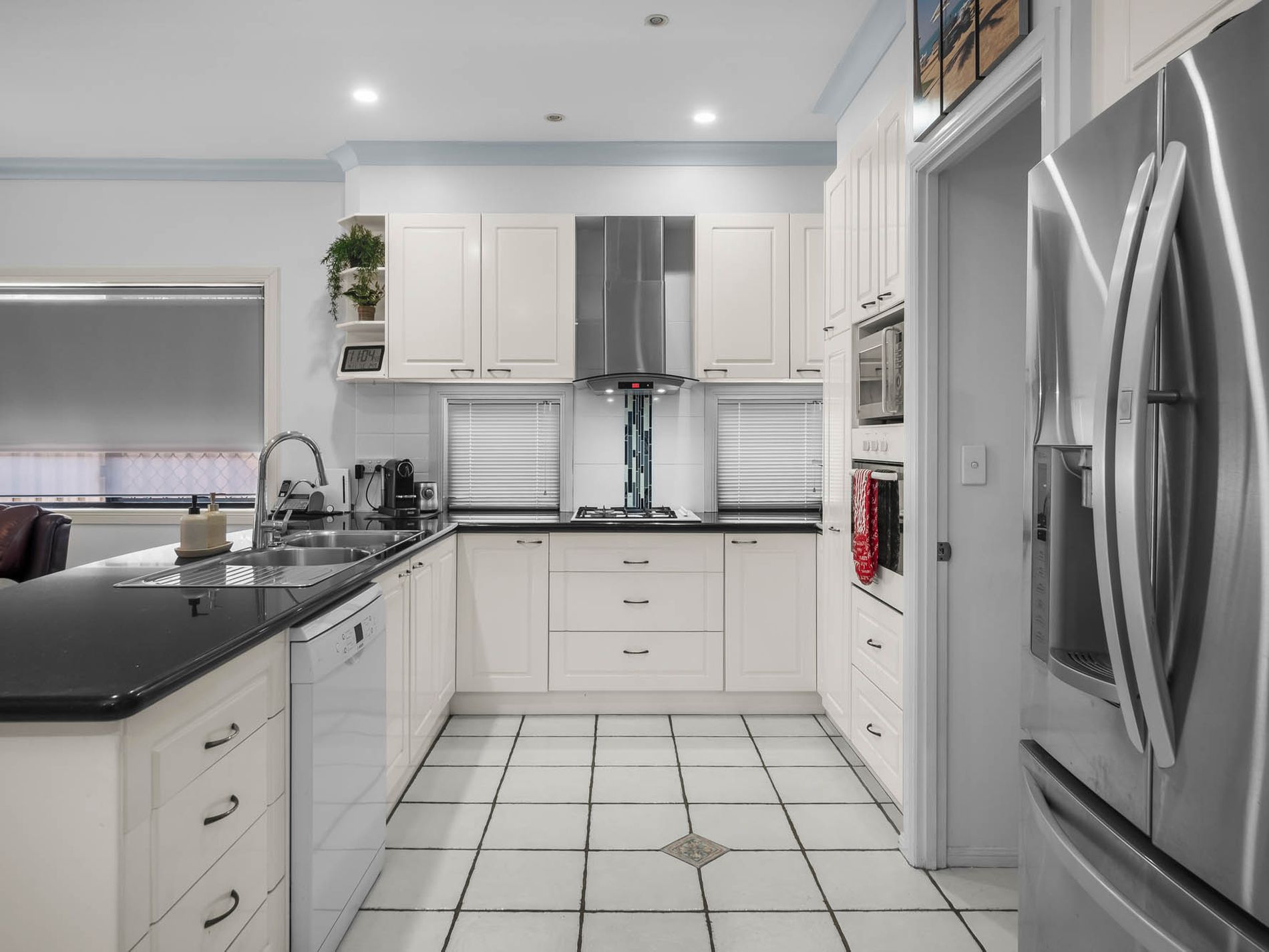 • Open plan kitchen with plenty of upper and lower cabinetry, dishwasher, large fridge cavity, granite bench top and butlers pantry with power outlets for appliances