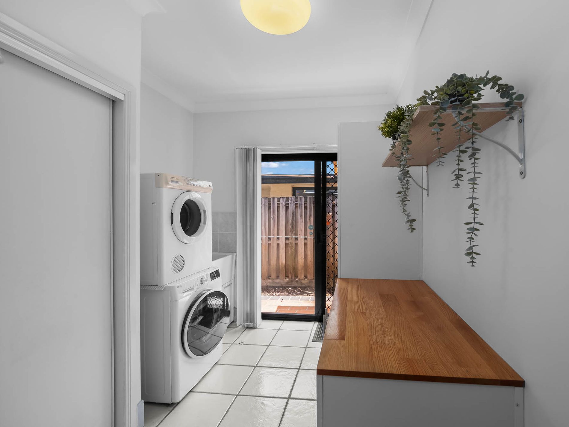 • Separate laundry with tiled flooring and built in storage, Robin Hood foldaway ironing board with power and light plus direct access to outside hanging space