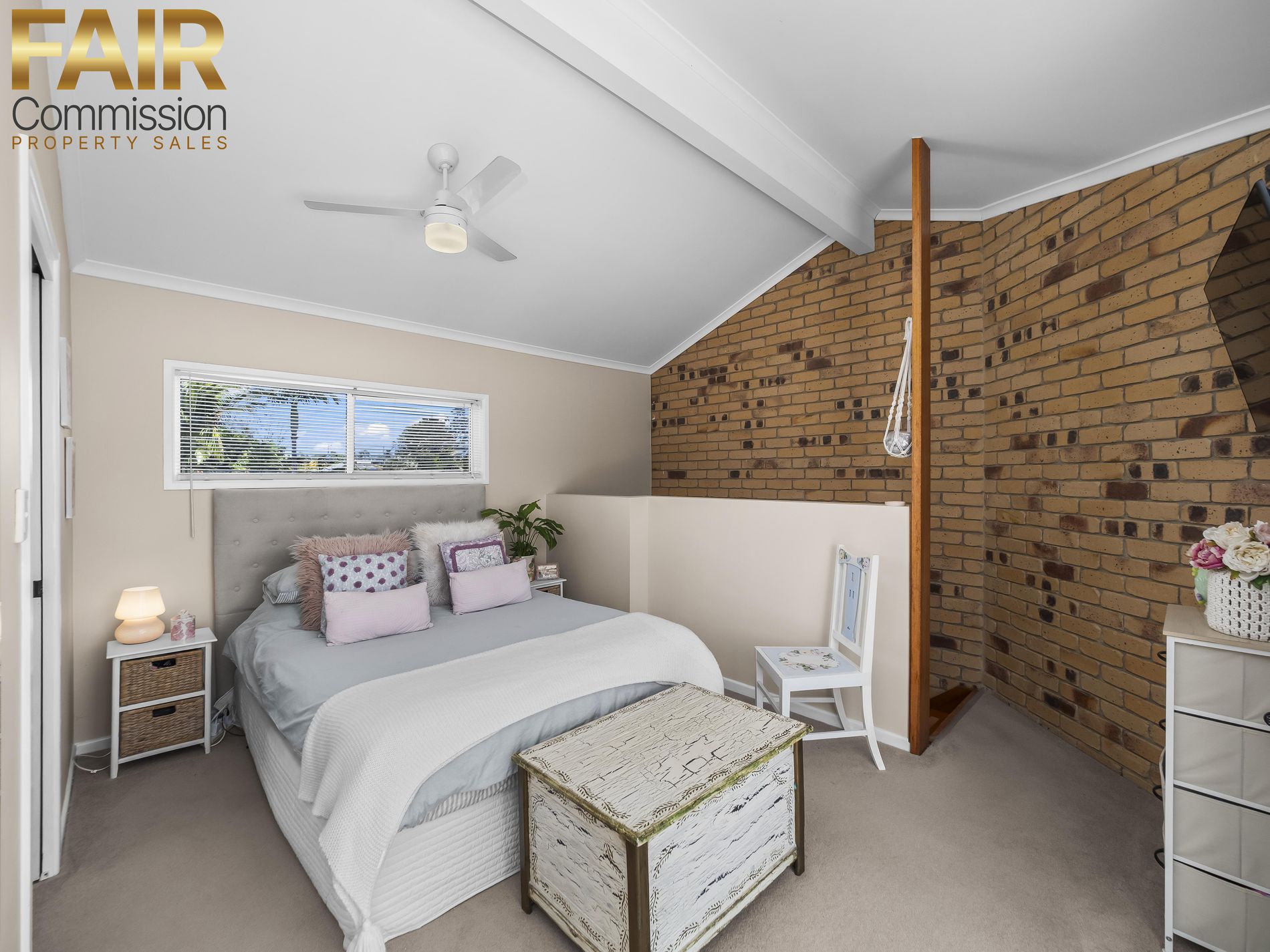• Bedroom 2 with carpet flooring, fan and triple built in robe