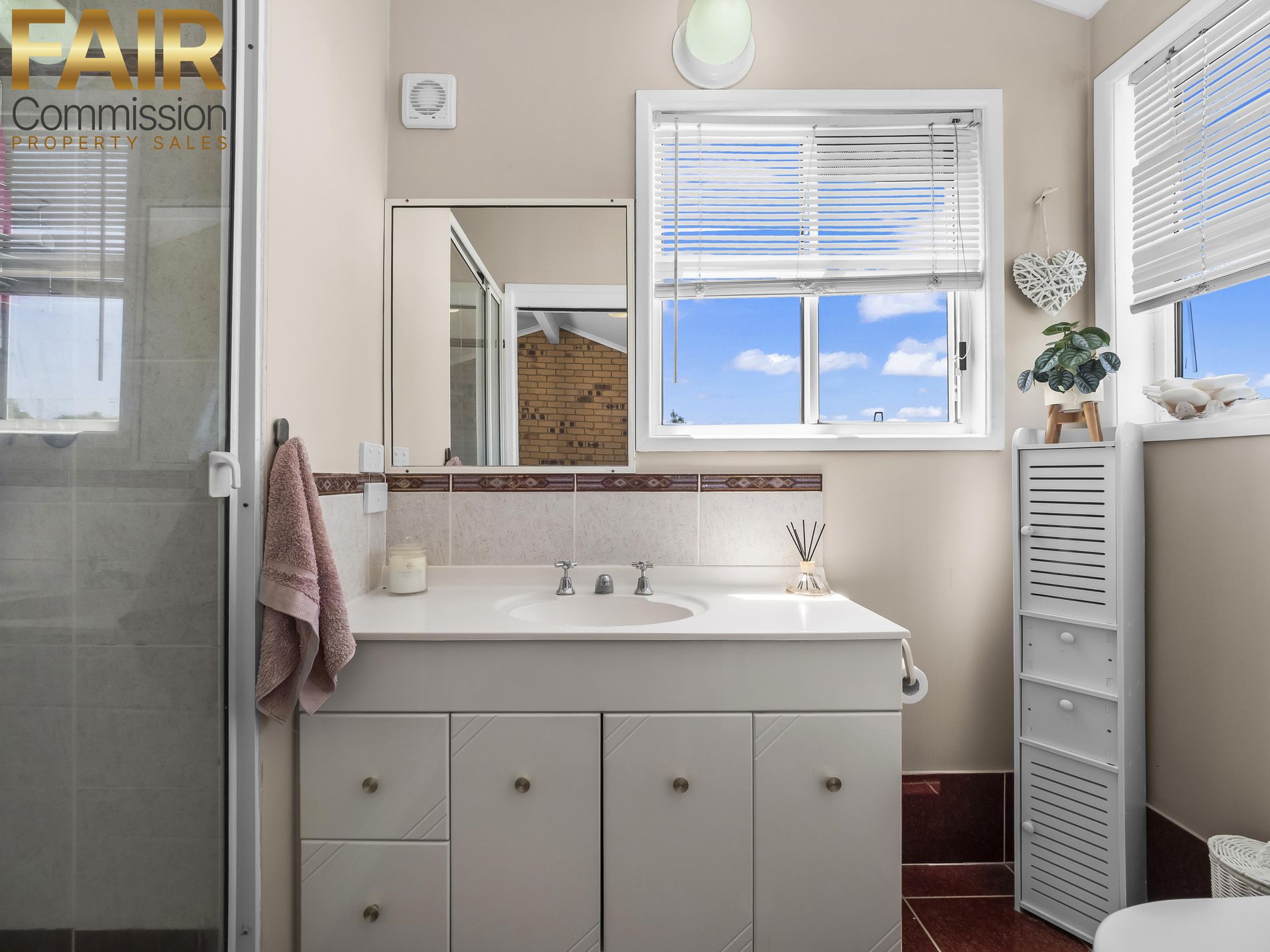 • Main bedroom has carpet flooring, fan, 2 double built in robes plus en-suite with shower, single vanity unit and toilet