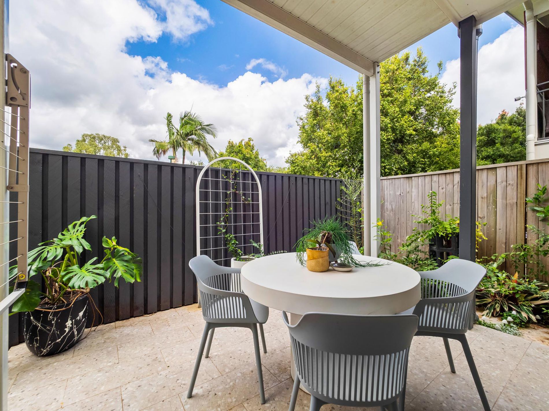 • Patio with porcelain tiled flooring and garden space for pets