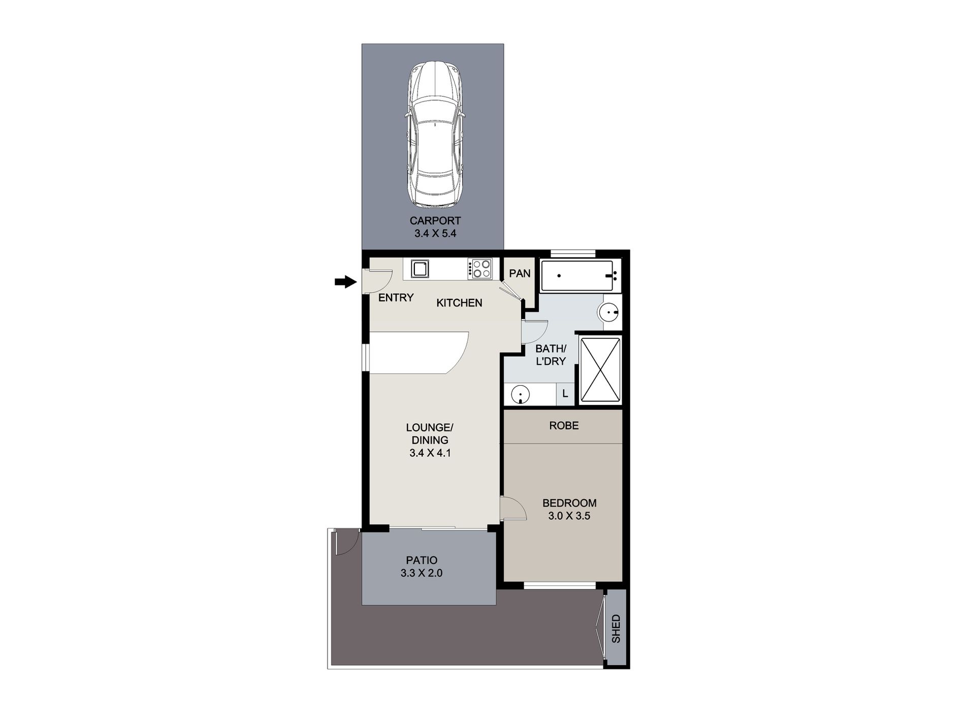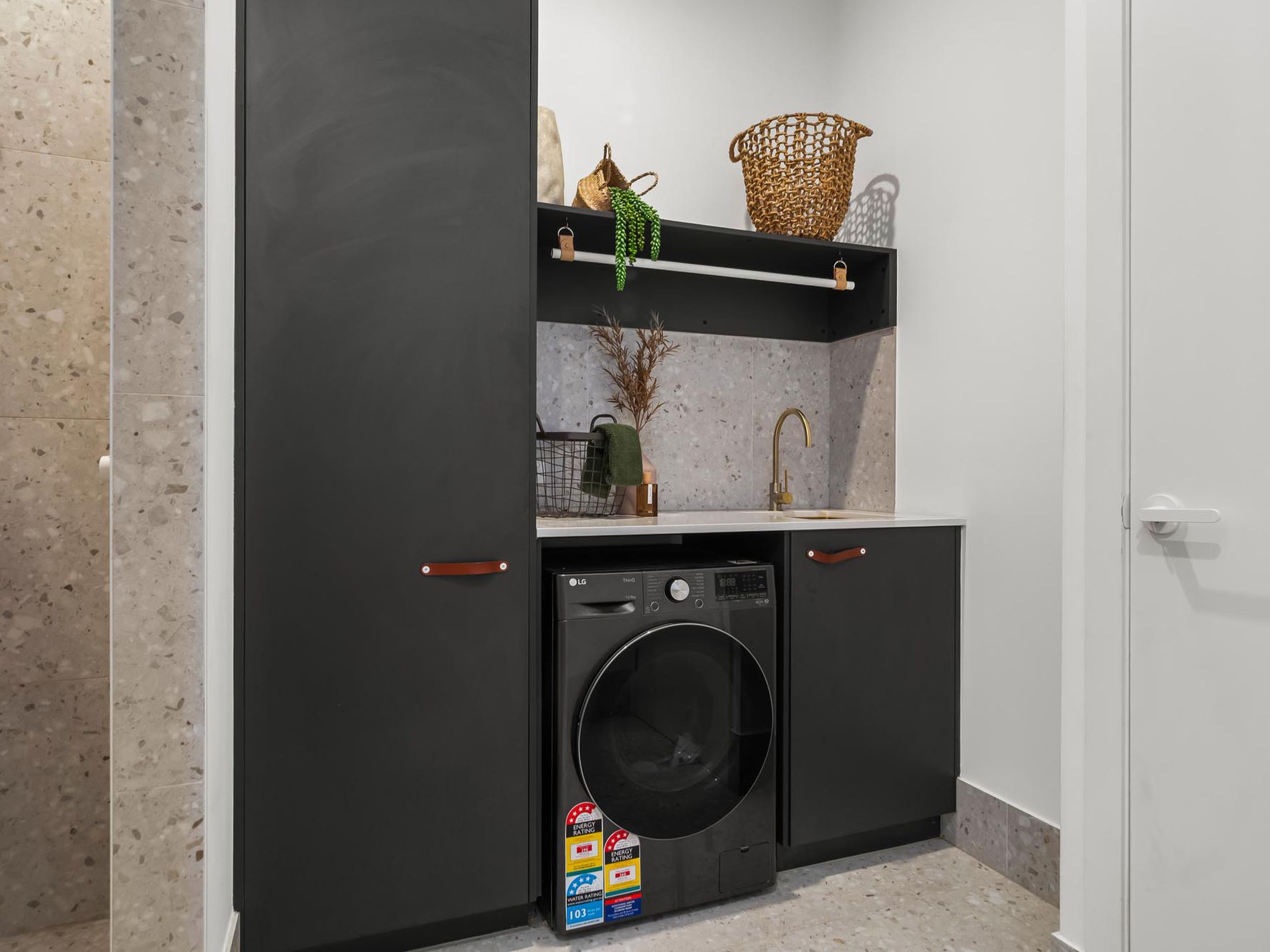 • Laundry space with built in storage and benchtop